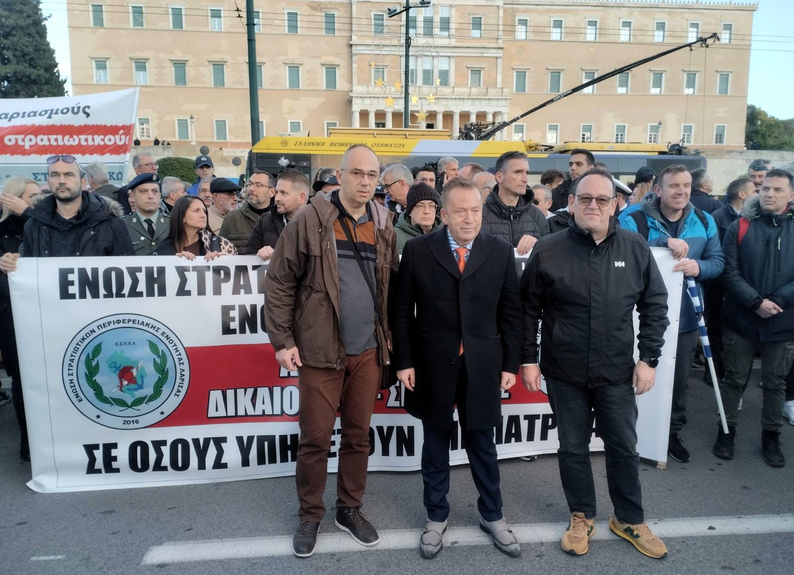 Η Ένωση Στρατιωτικών Περιφερειακής Ενότητας Λάρισας - ΕΣΠΕΛ στις 08 Ιανουαρίου 2026 έδωσε δυναμικό παρόν στη συγκέντρωση διαμαρτυρίας των εν ενεργεία και εν αποστρατεία Στρατιωτικών, στον εξωτερικό χώρο της Βουλής των Ελλήνων, με αφορμή τη συζήτηση του Πολυνομοσχεδίου του Υπουργείου Εθνικής Άμυνας.